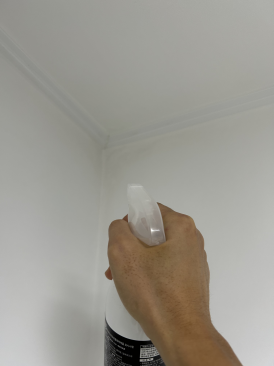 곰팡이제거제를 키친타올로 닦은뒤 반응촉진제를 분사해주면 거품이 생기면서 반응이 일어납니다.
