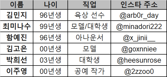 1. 솔로지옥5 여자 출연진 프로필 간략 버전